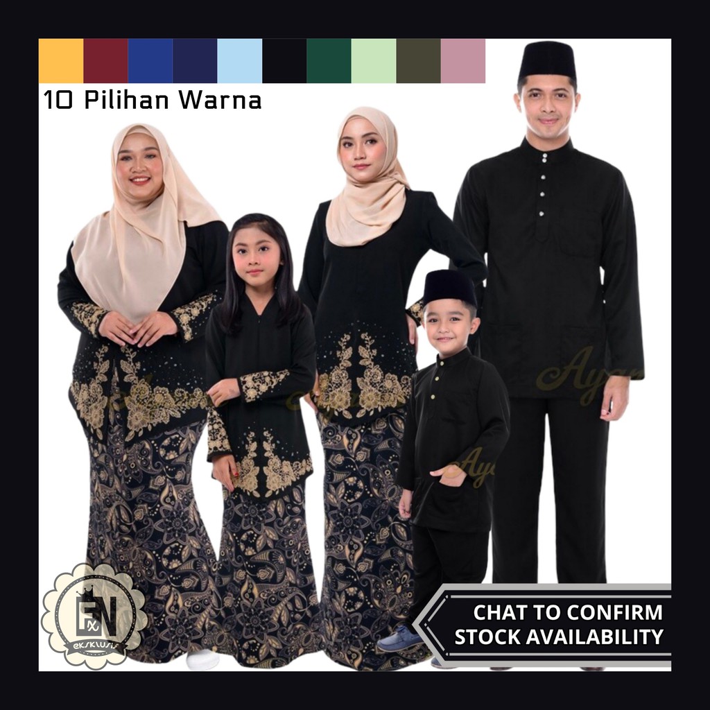 Baju raya sedondon tema warna black (hitam) set family ayah ibu anak baju kurung baju melayu kurta rayafr.